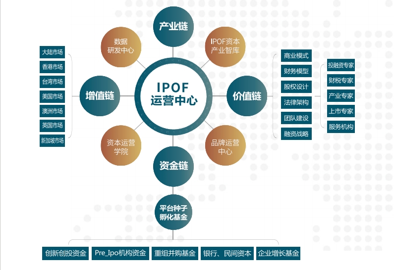 麦迪逊IPO孵化工厂企业生态链致力于专业化、系统化、生态化孵化企业成长;个性化、批次化、成果化定制企业上市;建立一流的企业国际孵化体系,实现选种、育种、孵化、优化西部企业,打造行业产业链竞争力上市公司。计划组建数万家企业数据库、数百亿规模的孵化企业资金库,引进建立具备国际视野的人才库,为西部接通千万亿全球资本市场资源库,这些数据资源将用于平台发展,普惠西部企业,转变思维,提升资本运营理念。计划每年孵化100家种子公司,重点定制10-20家IPO公司,打造10-20家准上市公司,并实现10-20家重组并购公司。